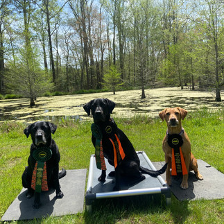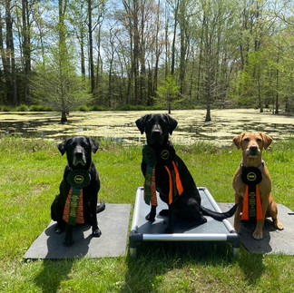 Dixie, Georgie, and Willow all ran their first NAHRA Senior hunt test this past weekend. The test was in Heidlersburg, PA and was hosted by the Northern Piedmont Retriever Club. The girls ran in the tests on Saturday and Sunday. In the past, the girls have primarily run in AKC hunt tests. Based on just this one experience, we found the NAHRA hunt test to have more realistic hunting scenarios than those we have been presented in the AKC hunt tests. The NAHRA test includes a land series and water series but in place of the land/water series are upland and trail series (a total of four series). Georgie and Willow really love the upland series. Dixie likes it but is much more methodical in her approach to finding a bird to flush in the upland series. For this test we are awarding third place to Georgie who crashed in the first series on Saturday but qualified on Sunday, second place to Dixie who qualified on Saturday and ran all fours series on Sunday picking up all her birds but came up short on points and first place to the youngster Willow who qualified on both Saturday and Sunday. We want to first thank God for this wonderful opportunity and for keeping us all safe, we want to also thank the Northern Piedmont Retriever Club for hosting such a great event and thank all the judges and workers and send out a special thank you to Larry Housman who introduced us to the NAHRA tests and helped us train and prepare for the test. If you have never run or seen a NAHRA test, we encourage you to check it out.